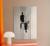 This fascinating work of art plays with the tension between clear lines and flowing shapes. The vertical stripes give the composition a sense of structure, while the black drops add visual dynamism and depth. In its reduction to black and white, this abstract work invites interpretation and conveys a balance between order and chaos. Perfect for modern spaces seeking minimalist elegance with emotional depth.