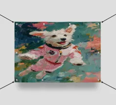 White dog in a spacesuit hahnemühle