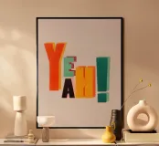 A big bold YEAH! to brighten your day. This fun, retro-inspired print mixes chunky letters with mismatched colors for that perfect imperfect vibe—think vintage posters and collage cutouts. With warm oranges, sunny yellows, minty greens, and soft pastels, it’s a total mood-booster. Whether you hang it in your studio, hallway, or above your desk, it’s here to bring good energy and a little creative chaos in the best way. By showmemars