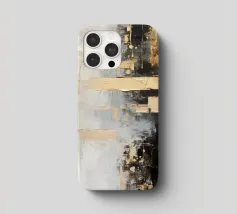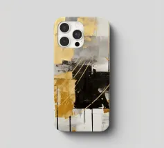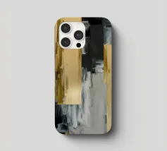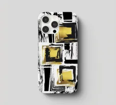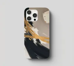 Modern abstract graphic design with a touch of elegance. Experimental vector painting with different brushes in black and white with golden highlights. Dynamic and very appealing contemporary design.