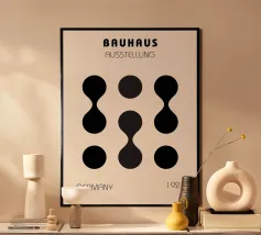 This powerful Bauhaus design combines modular, semi-circular shapes in deep wine red to create an overall graphic image that radiates structure, rhythm and style. The timeless composition appeals to lovers of abstract art, retro design and modern living aesthetics. Ideal for murals, T-shirts, mugs or cushions - an eye-catcher with artistic appeal for your home or office.