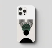 This geometric design combines clear black lines that form a semi-circle with overlaid circles in green and black. The contrast between the muted colours and the light background gives this motif a modern and harmonious aesthetic. Perfect for wall murals, mugs, cushions or mobile phone covers, it brings an elegant and calming atmosphere to any room. Ideal for lovers of minimalist and timeless boho art as well as an inspiring gift idea.