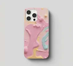 A fluid splash of creamy substance creates dynamic shapes on a warm background. Bubbles rise amidst soft colors, capturing a sense of movement and energy in the design.