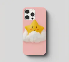 A cheerful star character with a smiling face and blush cheeks. Its soft yellow hues create a friendly and inviting appearance, perfect for children's themes or playful designs.