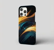 Vibrant and dynamic abstract design features swirling lines in orange and turquoise against a dark backdrop, perfect for use as wallpaper or digital art decoration.