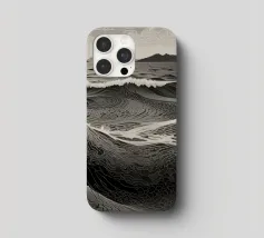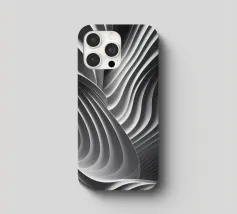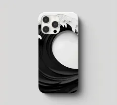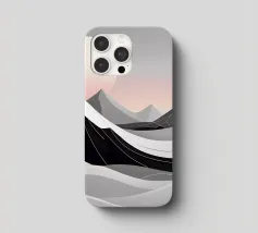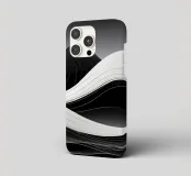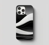 Curved black and white waves undulate across the canvas, forming an abstract landscape. The smooth transitions create a sense of rhythm and depth, inviting contemplation and creativity.