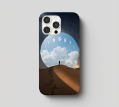Experience the magic of travel and night skies with this atmospheric artwork featuring a hand gently touching an airplane window overlooking glowing desert dunes. A crescent moon shines in a deep blue sky filled with stars, creating a serene blend of wanderlust and wonder. The warm golden sands contrast beautifully with the cool night tones, capturing the feeling of solitude, reflection, and dreaming above the world. Perfect for travel lovers, minimalists, and fans of cinematic, dreamy window-view art.