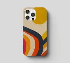 This poster exudes pure retro vibes: dynamic curves in warm orange, red and yellow tones meet calming turquoise and cream - a clear reference to the design of the 70s. The vintage look with a fine patina creates a nostalgic charm and makes the motif a real eye-catcher. Ideal for anyone who wants to bring colour, movement and retro aesthetics into their rooms. Whether in the living room, office or creative area - this picture makes a bold, stylish and therefore timeless statement.
