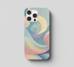 Intricate spiral shapes in soft pastels blend harmoniously, giving the illusion of flowing motion against a pale backdrop. The design captivates with its gentle curves.