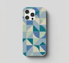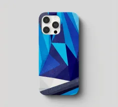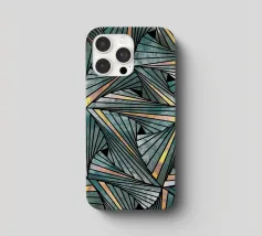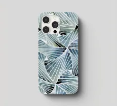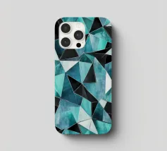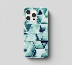 Digital art with an abstract triangular pattern in turquoise and white. Black accents provide contrast, while a subtle grunge texture adds depth and character to the geometric design.