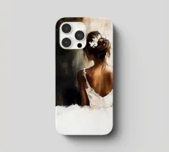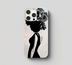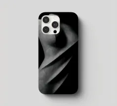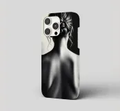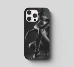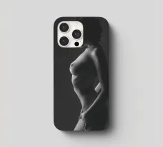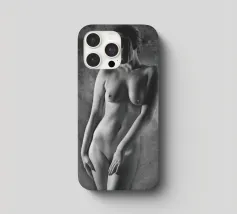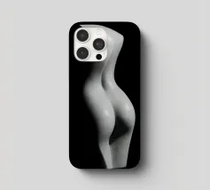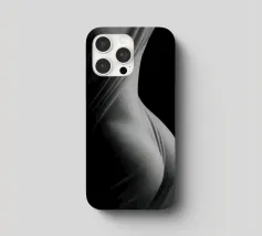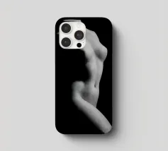 A woman poses with her back turned, showcasing the contours of her spine and shoulder blades. The black and white tones enhance the beauty of her silhouette and create an artistic atmosphere.
