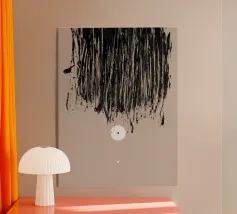 Modern and minimalist abstract with lines and paint splatter acrylic glass