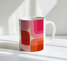 This abstract design is an explosive homage to the mid-century modern style and the unbridled energy of pop art. Rounded rectangles and squares dance in a warm colour palette of bright orange, fuchsia, deep red and soft peach. The composition radiates an almost psychedelic, yet perfectly balanced optimism through its geometric playfulness and the layering of the shapes. A masterpiece that immediately spreads joy, enlivens the room and celebrates the aesthetics of the 60s and 70s with timeless freshness.