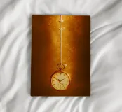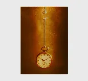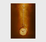a clock hanging on a nearly broken string