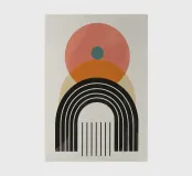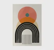This minimalist work of art combines soft geometric shapes and bold colour tones. The combination of a dominant black arc and harmonious circles in orange, coral and beige gives the design a modern and stylish look. The clean lines and balanced colour contrast make it a real eye-catcher for your home - whether as a wall mural, mug, mobile phone cover or cushion. Perfect for lovers of abstract art and geometric patterns who are looking for unique decorative pieces.