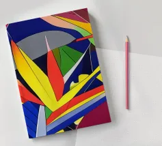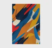 This artwork features a lively composition of bold colors including red, blue, yellow, and orange, creating a dynamic and energetic atmosphere ideal for digital wallpapers and designs.