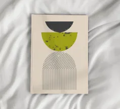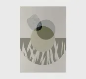 Modern, contemporary and minimalist art with geometric round shapes and textures in soft pastel shades of sage green, beige and grey. Simple and abstract motifs characterize this artwork, which fits well in bohemian, industrial, basic and modern living styles and interiors.
