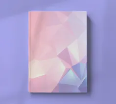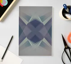 Vibrant abstract composition showcases a blend of purple and blue hues, forming sharp geometric shapes and smooth transitions that create depth and movement.