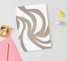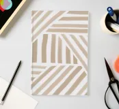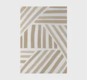 Modern abstract design featuring beige and white stripes arranged in various diagonal and horizontal orientations, creating a visually dynamic and contemporary pattern.
