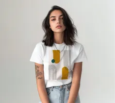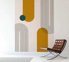 This modern, minimalist design combines clean lines, warm mustard yellow and green tones and organic shapes to create an aesthetic composition. Inspired by abstract art and boho style, this motif fits perfectly in a modern living room, office or bedroom. Ideal as a wall mural, cushion, mobile phone cover or mug - a stylish eye-catcher for design lovers who want to make their home elegant and contemporary.