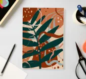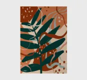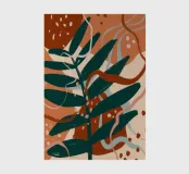 "An abstract botanical art wallpaper features stylized representations of plants and foliage using artistic shapes, flowing lines, and modern color palettes. Rather than realistic depictions, the desig"