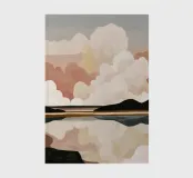 A minimal abstract landscape of soft cloud forms and subtle reflection in muted, neutral tones.