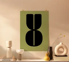 Experience pure retro vibes: this abstract composition of the letters O and U in bold, 70s-inspired letters on a poison green background is a real statement piece. The powerful colour combination and iconic design make it an eye-catcher in any room. Perfect for lovers of vintage aesthetics and bold designs. Pure retro vibes: Abstract bold O and U letters with a 70s flair on a neon green backdrop-an eye-catching art piece for true design enthusiasts. #RetroArt #70sDesign #BoldTypography #AbstractArt #GraphicDesign #WallArt