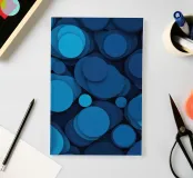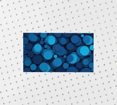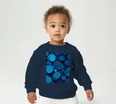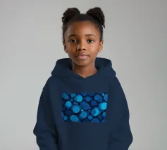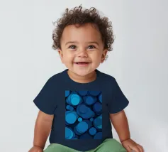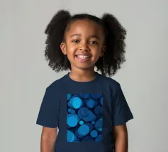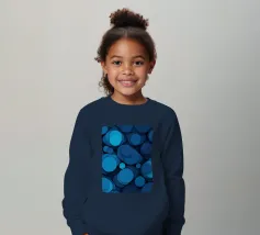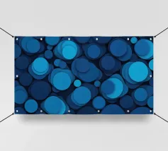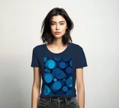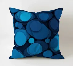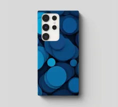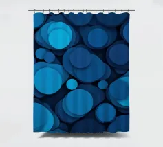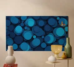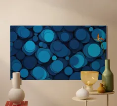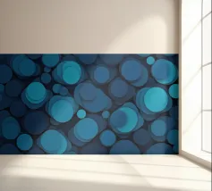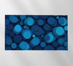 This striking abstract artwork showcases a collection of layered circles in varying shades of blue, creating depth and visual interest perfect for backgrounds and designs.