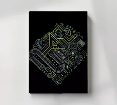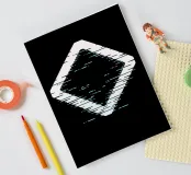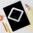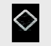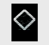 A striking design showcases a distorted diamond shape made of white lines, set against a solid black background, capturing the essence of digital art.