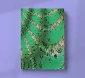 A picture of an abstract, dynamic pattern in the colours green and white.