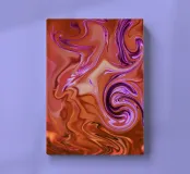 A picture of an abstract, dynamic pattern in the colours orange, brown and purple.