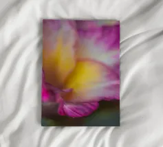 A picture of an abstract, dynamic pattern in the colours pink, yellow and purple. Circular and rotating.