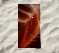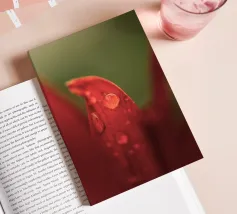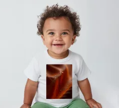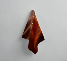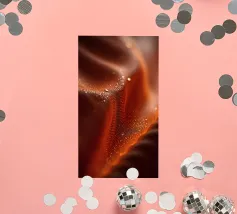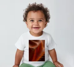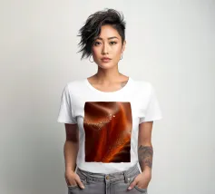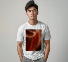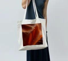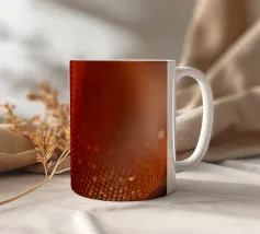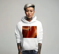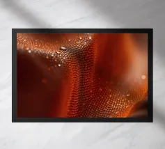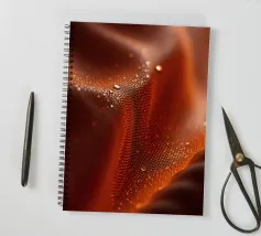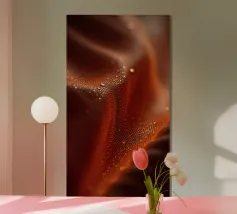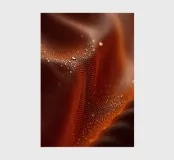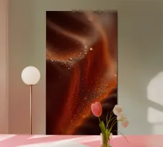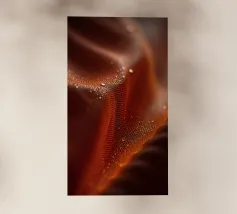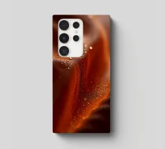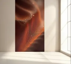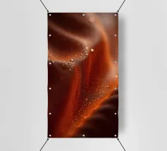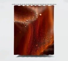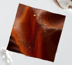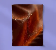 This captivating design showcases textured fabric flowing gracefully, accentuated by tiny droplets of water catching light. The warm orange hues create a dynamic and soothing background.