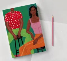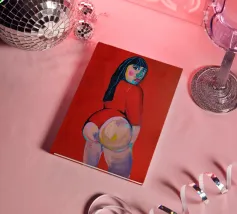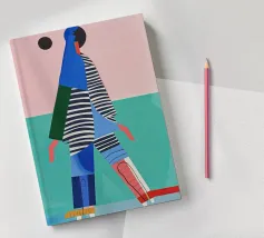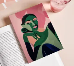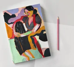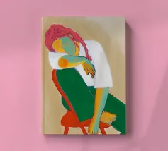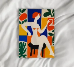A modern, abstract illustration of a human figure in a seated pose, rendered in bold, blocky colors. The piece is a stylish, artistic, and powerful exploration of the human form.