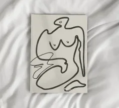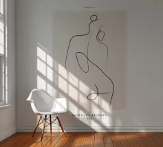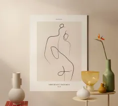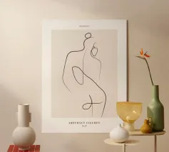 This minimalist line art design shows abstract figures in flowing, elegant lines. The clear, minimalist design gives the motif a timeless and modern aesthetic. The fine, black lines on a subtle background create a work of art that perfectly complements modern living styles. Whether as a wall mural, mug or cushion, this abstract motif brings an artistic, stylish atmosphere to your home. Ideal for art lovers who appreciate minimalist designs with depth.