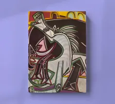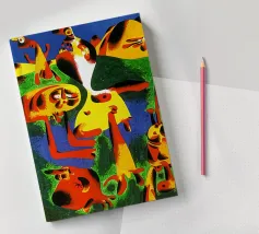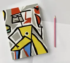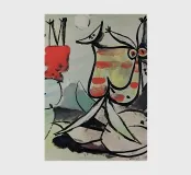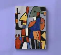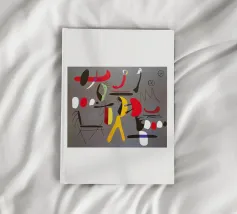 This vibrant and expressive abstract art print features several whimsical figures, rendered with bold black outlines and a playful palette of reds, yellows, and light blues against a muted background. The forms are distorted and fragmented, reminiscent of Cubist and Surrealist influences, creating a sense of dynamic movement and imaginative storytelling. This high-quality digital poster (7000x5000 pixels, 300 dpi) beautifully captures the spontaneous energy and artistic freedom of the original, making it a unique and captivating addition to any modern interior.