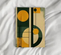 This unique motif combines geometric shapes with a harmonious colour palette of green, black and red on a warm beige background. The precise arrangement of lines, circles and semi-circles gives the design a modern yet artistic feel. Perfect for wall murals, cushions, mobile phone covers and much more - ideal for anyone who wants to integrate contemporary aesthetics into their everyday life.