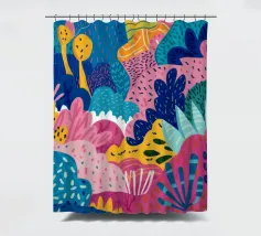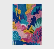 A maximalist abstract composition with a profusion of colorful organic shapes, spots, and lines, evoking a dense and vibrant jungle teeming with life.