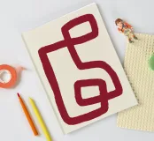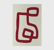 A bold red line forms an abstract, interlocking shape against a cream background. The simplicity and fluidity contrast beautifully with the stark color choice.