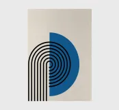 Infuse your space with the cool tones of this striking abstract art print, blending retro charm with modernist aesthetics. The design features a bold blue semicircle juxtaposed with a complex arrangement of black concentric arches and parallel lines, creating a visually compelling and dynamic composition reminiscent of 70s graphic design. This piece embodies both a playful retro feel and a clean, contemporary elegance. Produced at an impressive 7000x5000 pixels resolution and 300 dpi, this high-quality digital art ensures every crisp line and vibrant hue is rendered with exceptional precision,