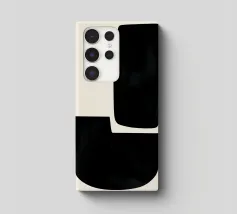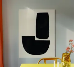 Minimalist illustration featuring two black geometric shapes on a light beige background. This clean, abstract design creates a harmonious visual balance, ideal for modern projects or spaces that focus on elegance and simplicity in a contemporary style.