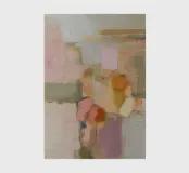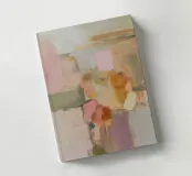 This abstract artwork in soft pastel colours captures a calm and harmonious atmosphere. The soft brushstroke textures and subtle colour tones of beige, light blue and pink give the painting a modern, minimalist elegance that fits perfectly into any contemporary home.