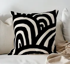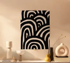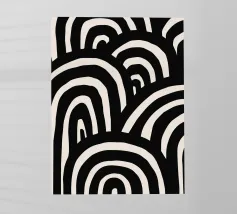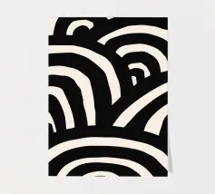 This fascinating design with curved, black lines on a cream-coloured background is reminiscent of abstract wave shapes. The dynamic composition adds energy and modern elegance to any room. Perfect for wall art, mugs, mobile phone cases, cushions and more, this pattern brings a unique, artistic touch to any living space. For lovers of minimalist and contemporary art, this design is a stylish eye-catcher and an ideal gift for creative minds.