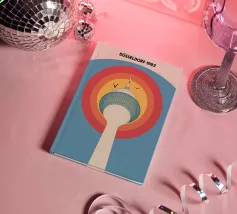 A bold, minimalist design with geometric shapes and vibrant colors. Its retro-inspired aesthetic adds a modern touch, perfect for architecture and design enthusiasts.
