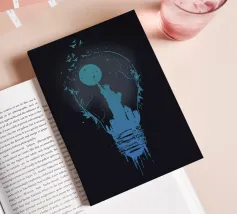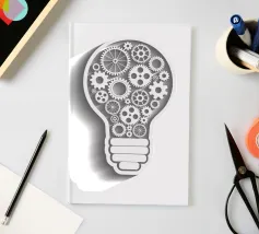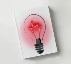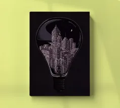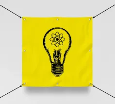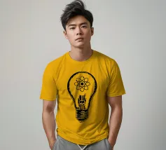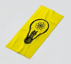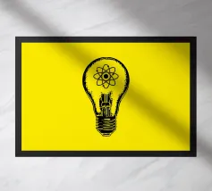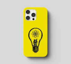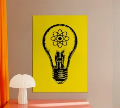 A classic lamp, designed in black lines, with an atom drawn in the center of the glass on a yellow background. This design combines the simplicity of a traditional lamp, which represents ideas and innovation, with the symbol of the atom, which refers to science and deep knowledge. This design is the ideal gift for science enthusiasts, students, teachers and professionals in fields such as physics, chemistry and technology.