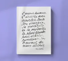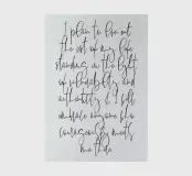 Former fashion designer Karli Florence has fully dedicated herself to typography with Honeymoon Hotel. Her pop culture-inspired work has just one goal: to spread loving messages. The project originated from a birthday present that Karli designed for a friend. The black and white collection now includes everything from film quotes and song lyrics to multilingual mantras and motivational messages. Karli lives and works in Gateshead, Northern England.