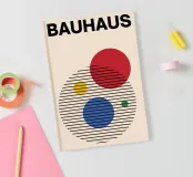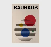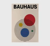 Dive into the innovative world of Bauhaus with this captivating abstract art print. The design features a dynamic composition of bold geometric circles in primary colors – a dominant red, a vibrant blue, a sunny yellow, and a subtle green – overlaid with striking horizontal black lines. This piece beautifully embodies the core principles of the Bauhaus movement, emphasizing form, color, and geometric abstraction. Produced at an impressive 7000x5000 pixels resolution and 300 dpi, this high-quality digital art ensures every crisp line and vibrant hue is rendered with exceptional precision, makin