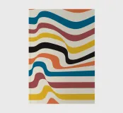 Embrace the vibrant aesthetic of retro design influenced by the Bauhaus movement with this striking graphic art print featuring abstract wavy lines. Composed of bold wavy horizontal lines in a rich color palette (teal, yellow, orange, black, red, brown, pink), set against a pale background, this artwork embodies principles of abstract form, color, and dynamic pattern. This high-quality digital art file boasts a stunning 7000x5000 pixel resolution at 300 dpi, ensuring exceptional detail and clarity for your poster print. A perfect piece for design enthusiasts and anyone appreciating colorful ab
