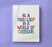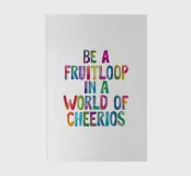 Celebrate individuality with our vibrant "Be a Fruitloop in a World of Cheerios" typography art print. This playful message comes to life in stunning rainbow watercolour hand-painted lettering, beautifully contrasting against a crisp white background. Perfect for children's rooms, nurseries, or any space needing a splash of colour and positivity, this cheerful design encourages embracing uniqueness. The whimsical, artistic style appeals to both kids and adults alike, making it a versatile addition to any home. Let this inspiring print brighten up your space and inspire confidence!