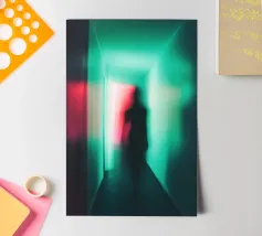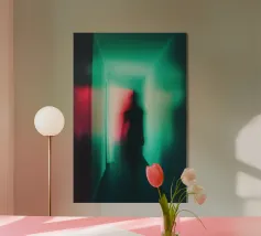 A narrow corridor, an enigmatic presence, a surreal light... This work seems suspended between two worlds, where space and time stretch into infinity. A captivating visual that evokes both solitude and fascination.